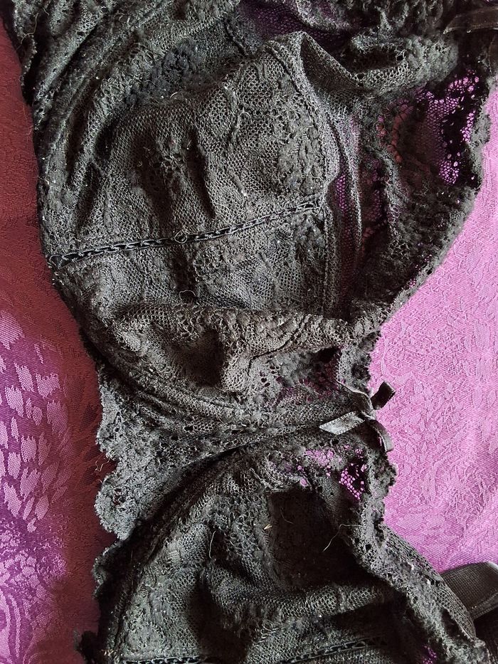 Soutien-gorge noir, bon état, taille 100E, sans marque, légèrement bouloché. Bretelles larges réglables pour apporter confort et rassurance côté large matière agréable