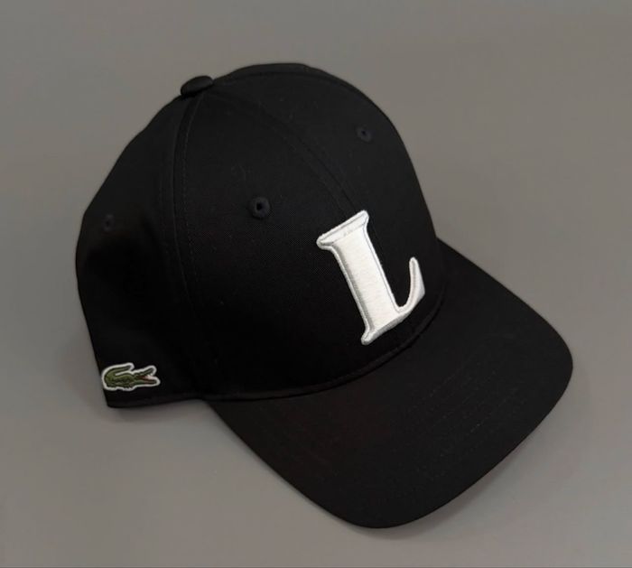 Je vends cette authentique casquette Lacoste en coton, coloris noir. C'est un modèle sobre et élégant qui va avec tout. • Détails : Grand "L" blanc brodé en relief sur le front et le célèbre crocodile vert brodé sur le côté. • État : Très bon état. Elle a gardé sa forme d'origine. • Ajustement : Taille unique réglable à l’arrière. • Look : Un classique du style tennis/heritage, très propre. Envoi rapide et protégé. 📦