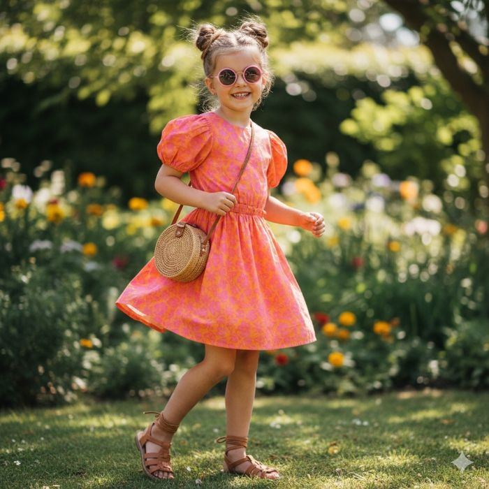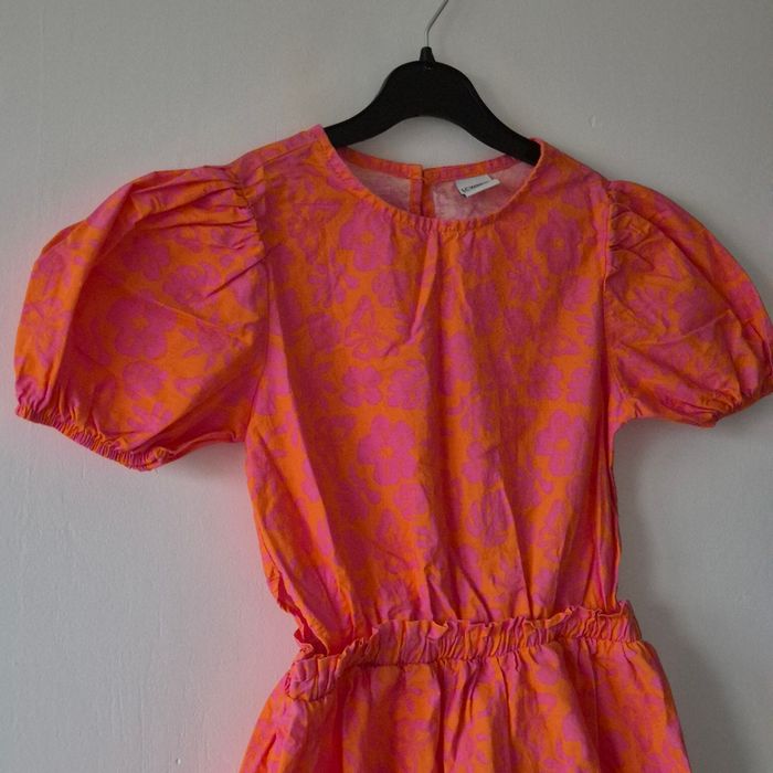 Robe d'été orange avec des fleurs rose Neuf sans etiquette Aucun defaut