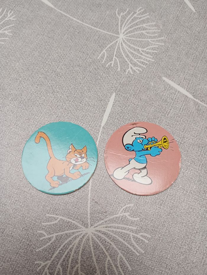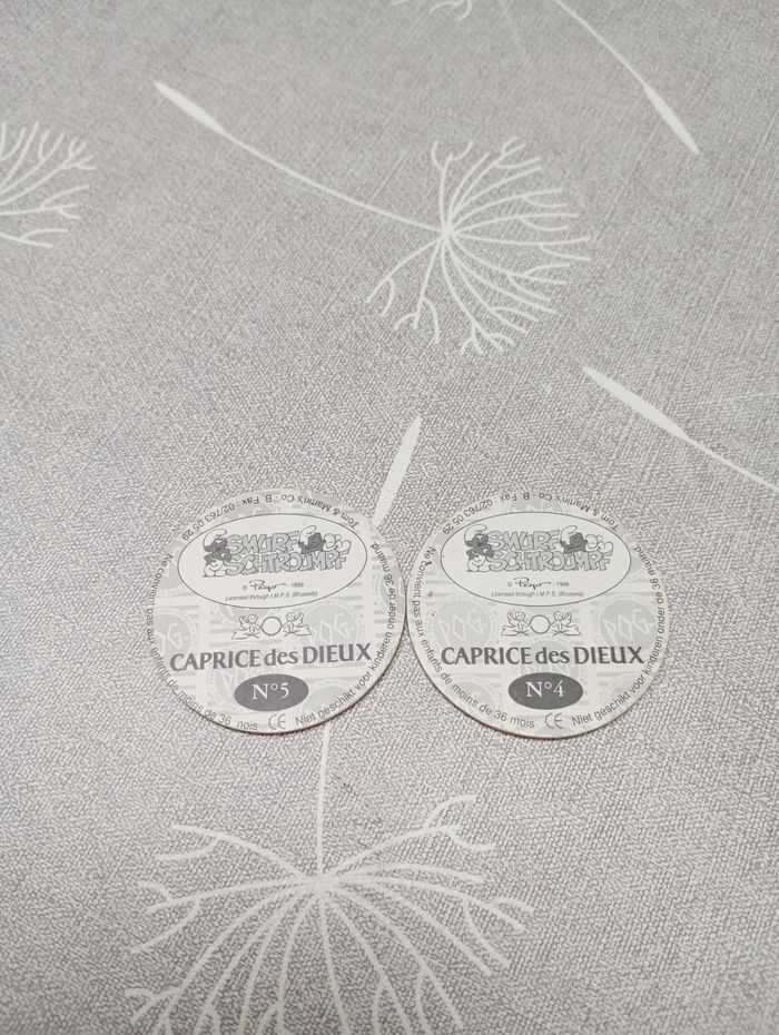 Caps de la série "Schtroumpfs" de la collection Caprice des Dieux. Numéro 5 (très bon état) et 4 (bon état).