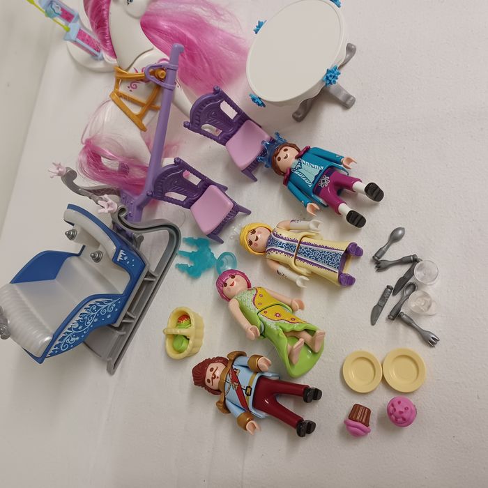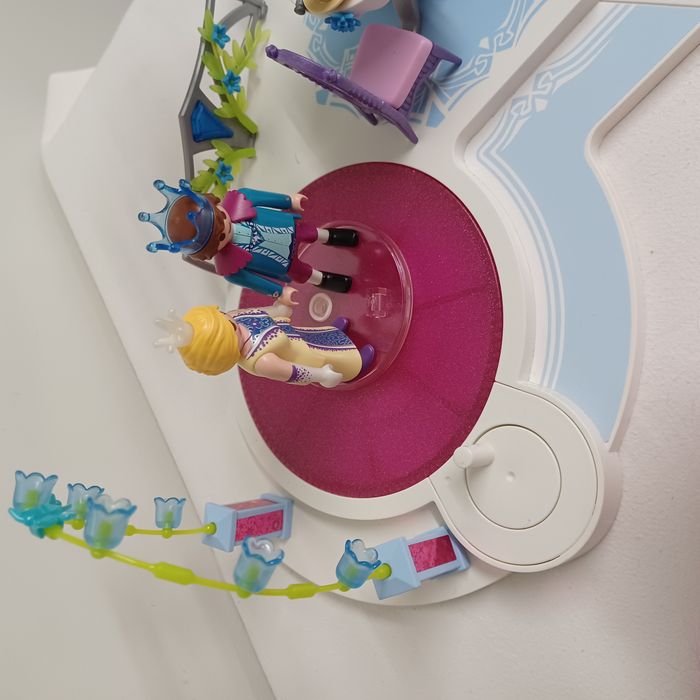 2 sets playmobil bal royal 70008 et couple royal 9474 Le bal royal playmobil 70008 une manivelle à tourner pour faire danser les personnages deux assiettes violettes remplacées par deux crème manque juste petits papillons sur l'arche + le coupe royal et son carosse tout est visible sur les photos J'ai d'autres playmobil en vente