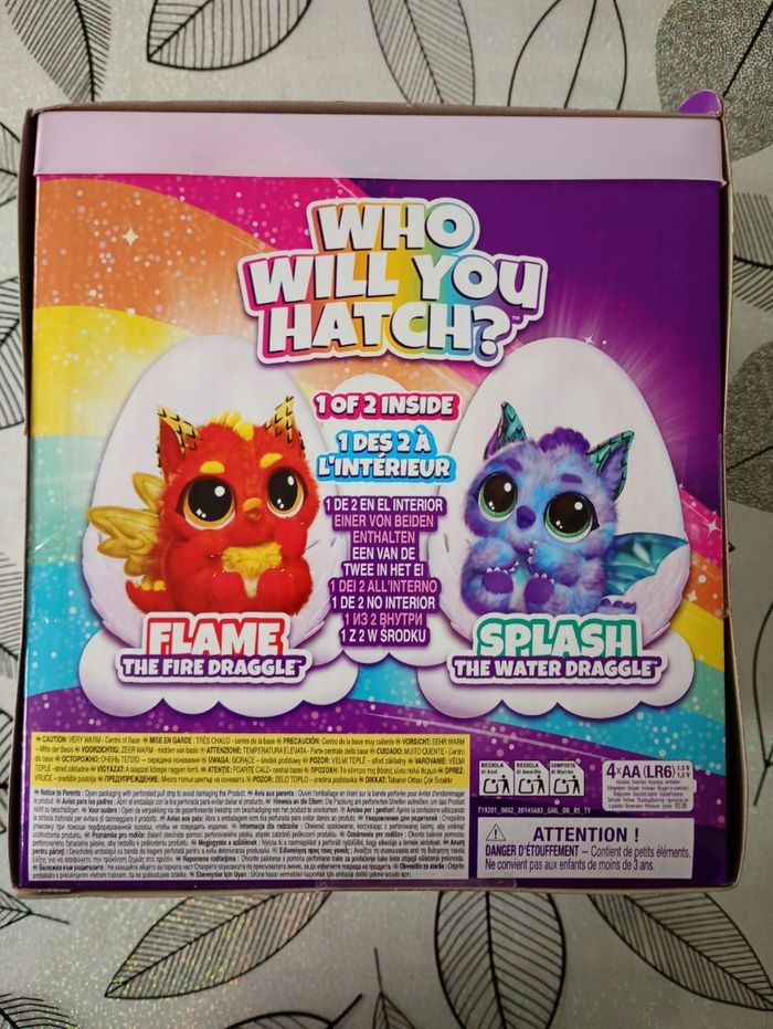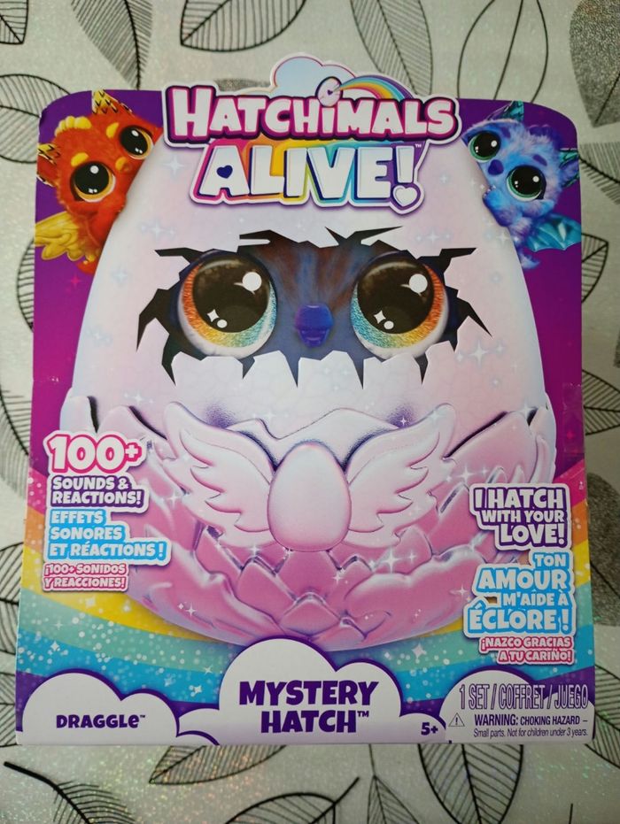 hatchimals alive oeuf Dragon éclosion secrète neuf dans son emballage d'origine Une fois votre Hatchimals rencontré, jouez avec lui et occupez-vous de lui avec le plus grand soin Apprenez-lui à parler, à danser et bien plus encore Plus de 100 sons et réactions 3 modes de jeux : Soins, Découvertes et Jeux Contenu : 1x Oeuf Mystère Draggle Hatchimals Piles requises : 4x LR6 AA (fournies), fourni avec sa notice d'utilisation