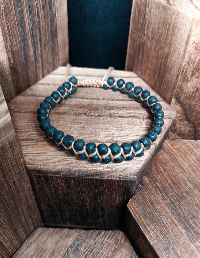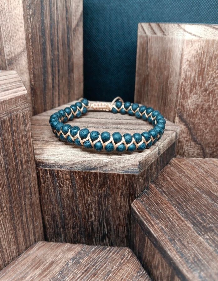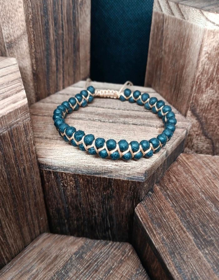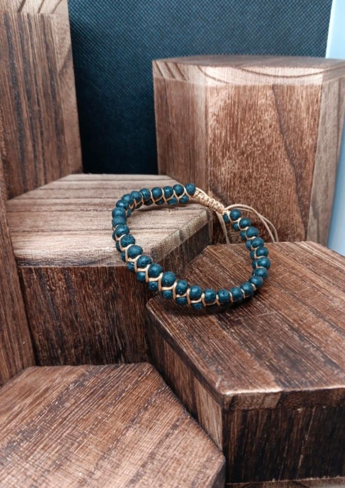 Bracelet tressé ajustable en pierre minérale de lave 4 mm–Énergie & style