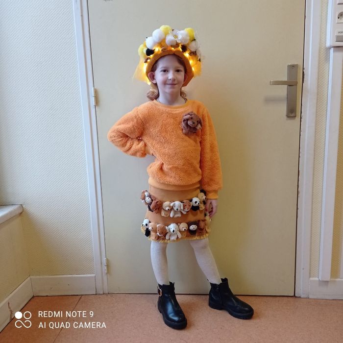 Comprend 3 pièces : jupe, haut et bandeau lumineux. Original. Fait main. Taille estimée.