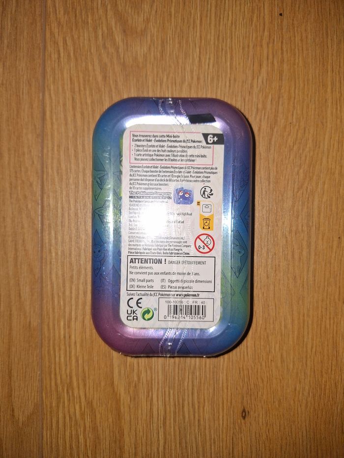 Lot de 2 Mini-tins Pokémon Ev8.5 Évolution Prismatique 🗒 État : Parfait. 📌 Remise en main propre possible en IDF. 📦 Envoi dans les 24 - 48h.