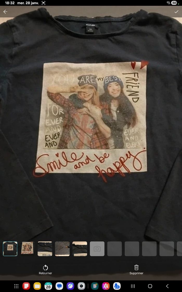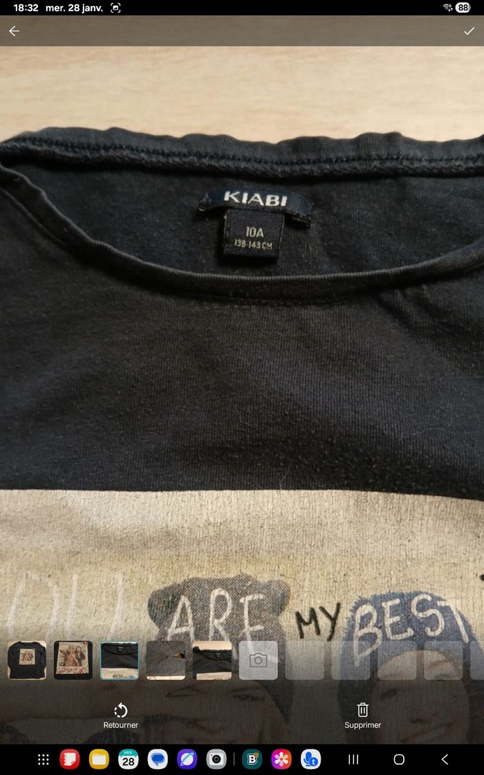 Tee-shirt manches longues 10 ans kiabi bleu foncé présente des signes d'utilisation petit accro à la manche voir photo