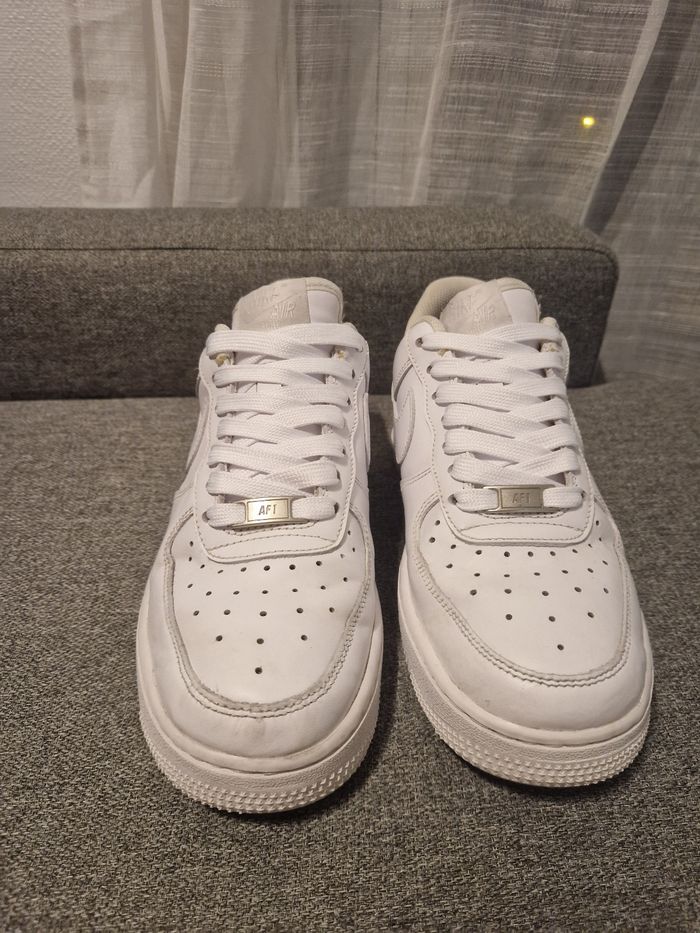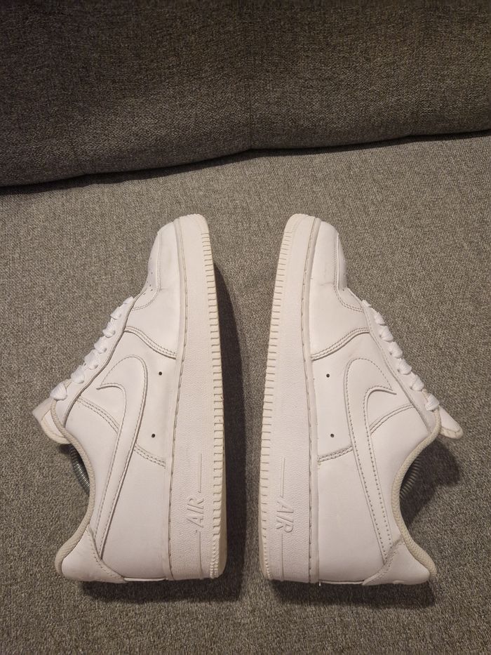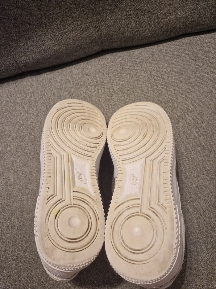 Basket Nike modèle Air force one af1 blanche taille 40 en bonne état talon intérieur gauche légèrement usé ✅️ Expédition rapide