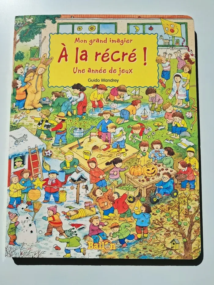 Livre Mon Grand Imagier : A la Récré - Une Année de Jeux par Guido Wandrey aux édition Ballon, publié en 2010. ✅ Très bon état. 🇫🇷 En français.