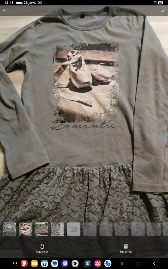 Robe manches longues mi saison grise dessin ballerine devant bas en dentelle 10 ans