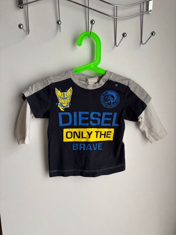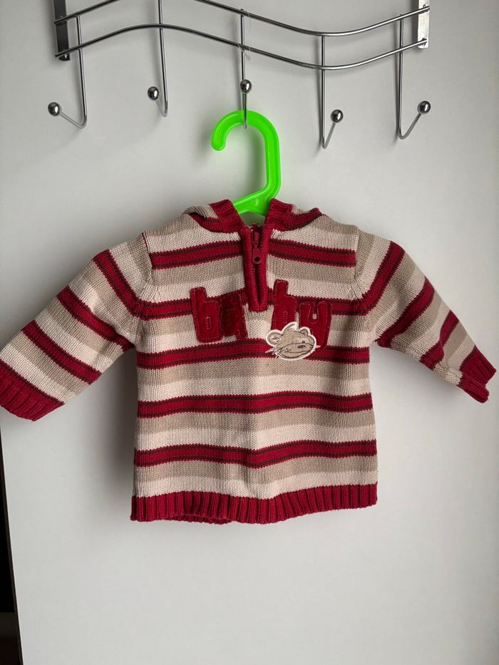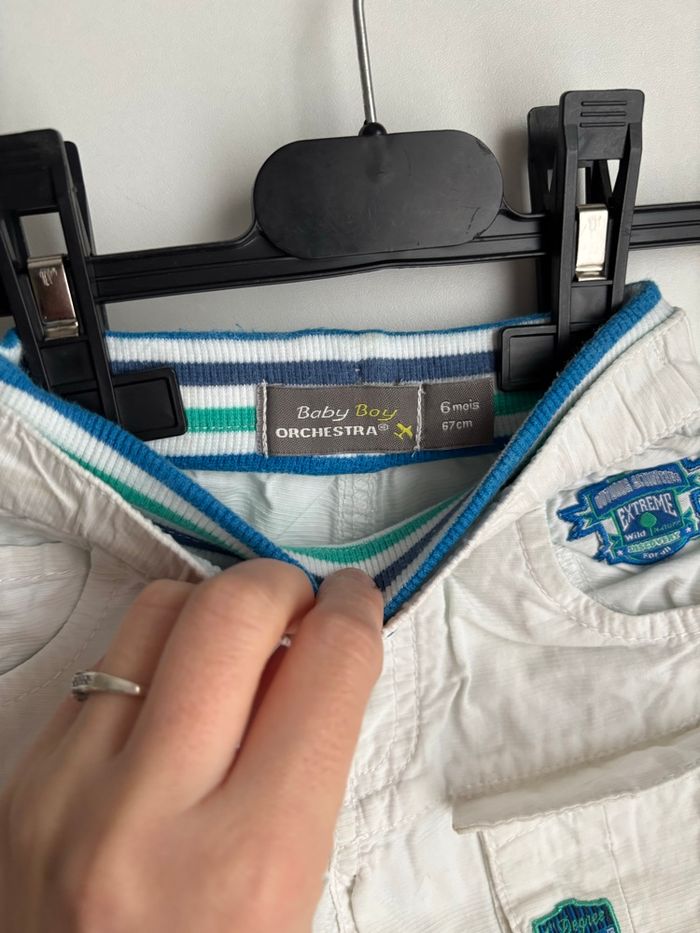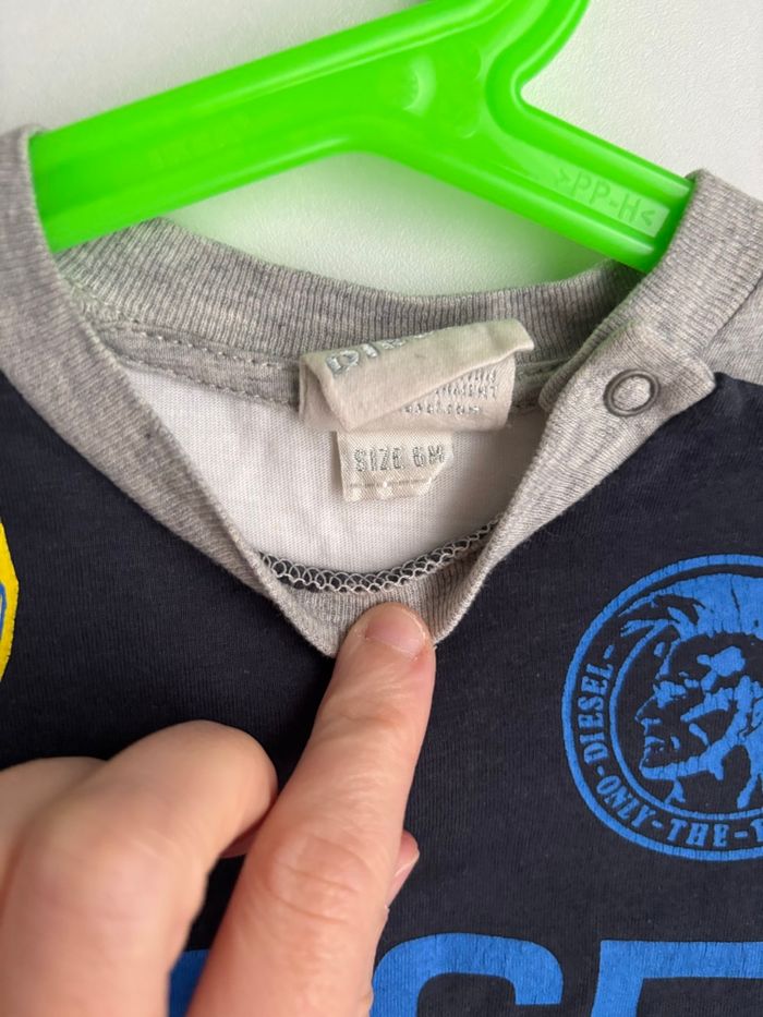 🏷️ Petit lot 4 pièces bébé Petit prix 🏷️ 6 mois garçon Pull à rayure capuche kimbalou 6 mois T-shirt manche longue superposé diesel 6 mois Pantalon blanc baby boy orchestra 6 mois Et un body manche longue grenouillère orange imprimé 6 mois petit trou derrière