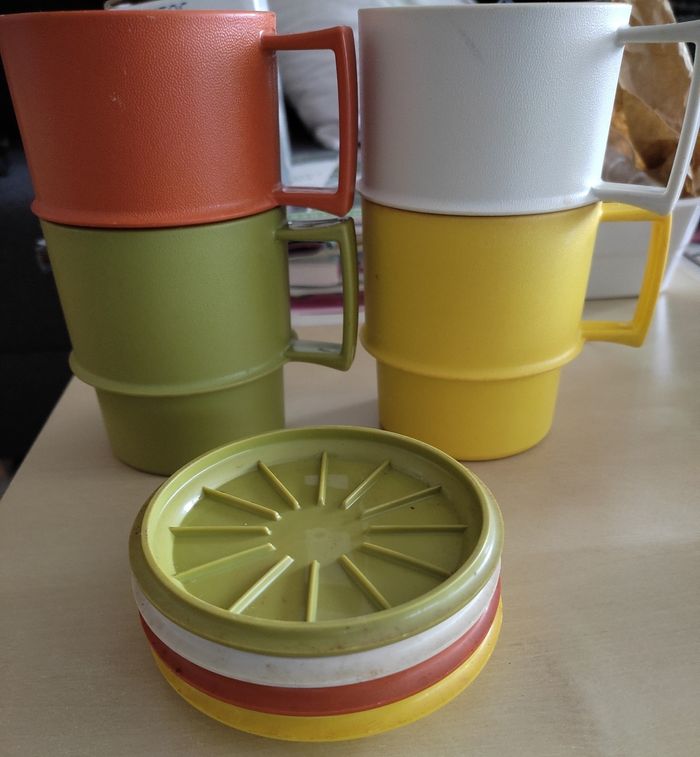 4 Tasses avec ses couvercles pour camping, bon état, propres