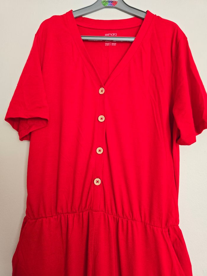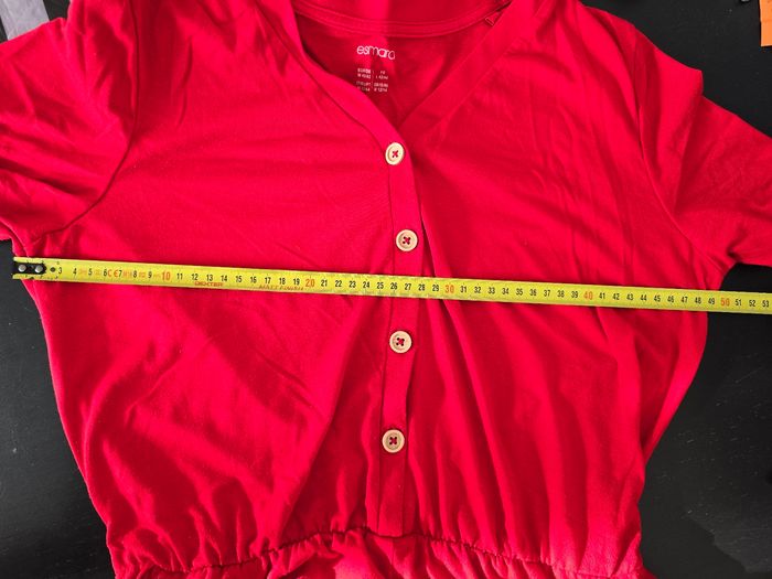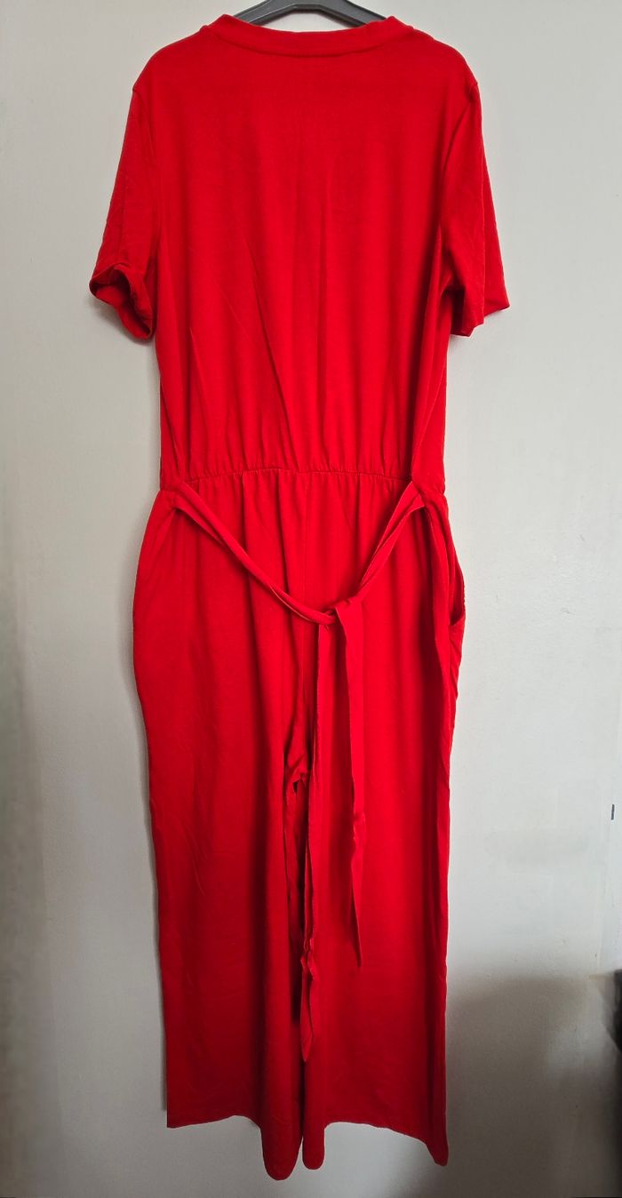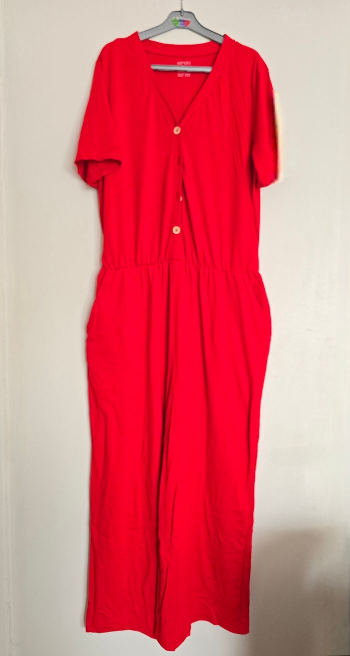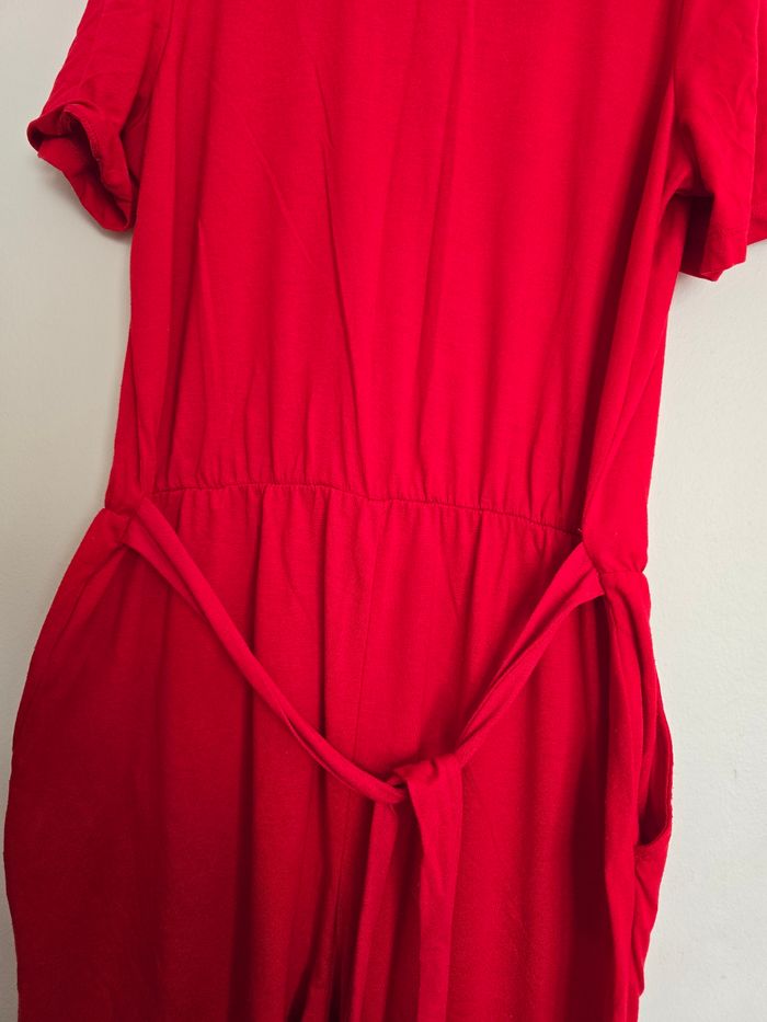 Combinaison pantalon rouge petite manche, boutons sur le devant, 2 poches devant + ceinture Taille : M En très bon état, quelques bouloches