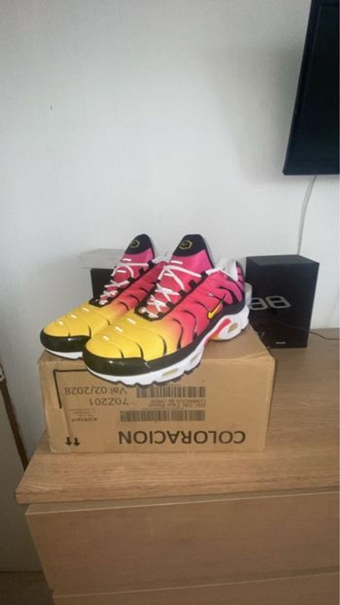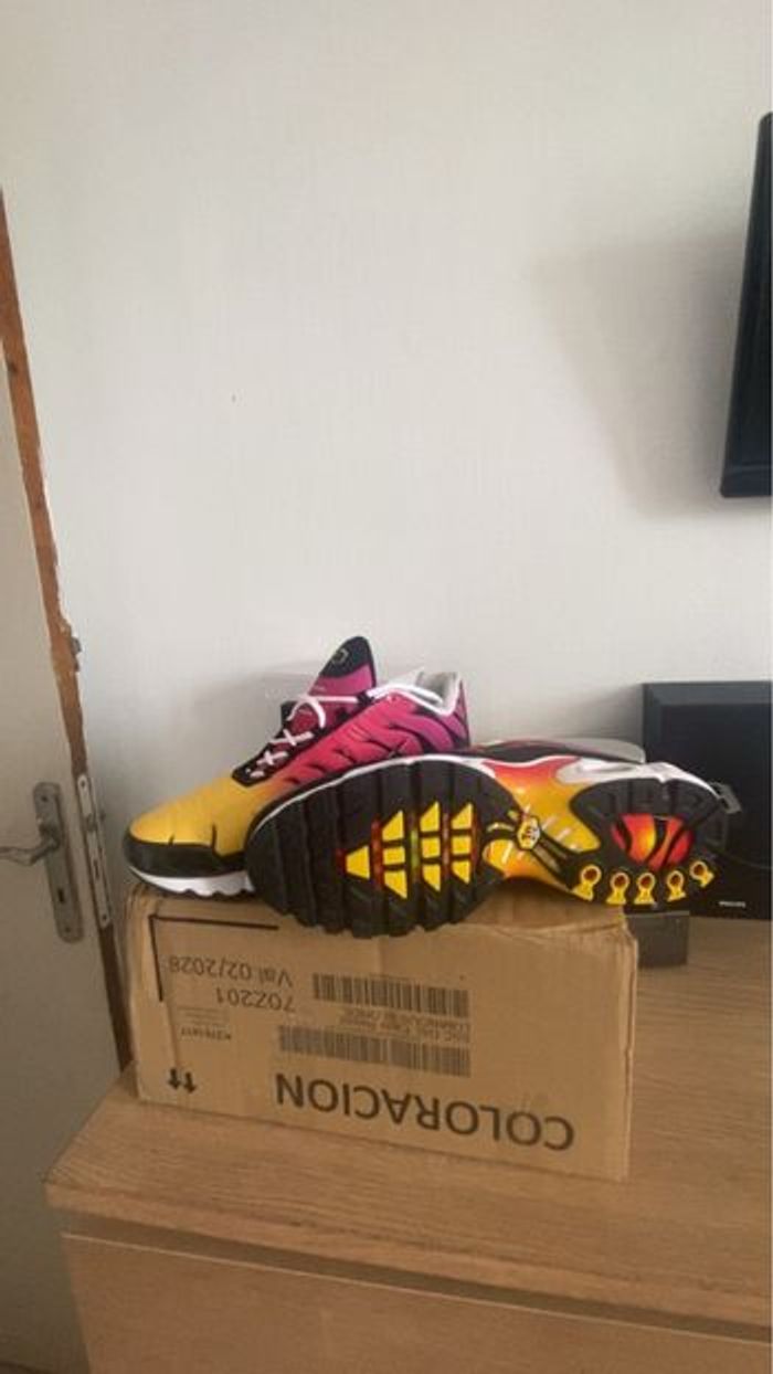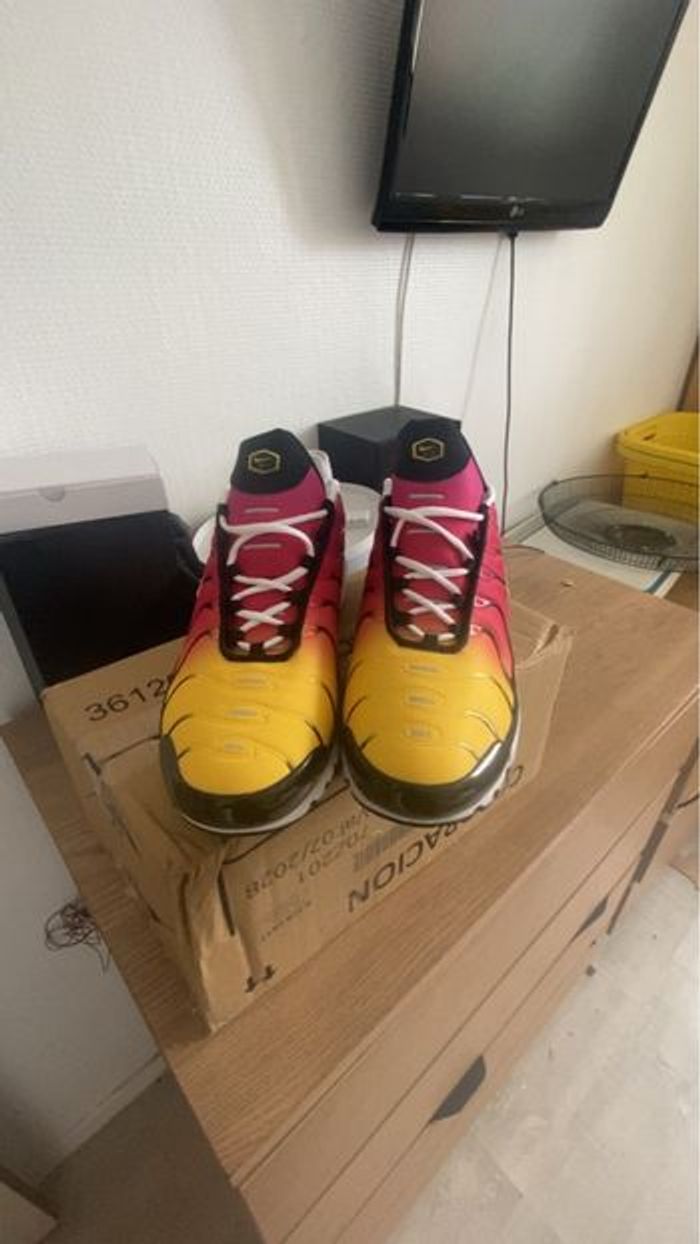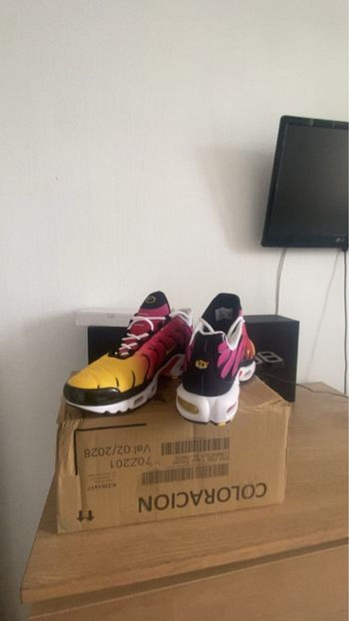 Bonjour 😄 Tn raimbow de Disponible en taille 44 La paire est neuf D’autre dispo en 45 et 43 N’hésitez pas à me demander je réponds vite La paire est neuf Avec la boîte 📦 Envoie rapide 💨