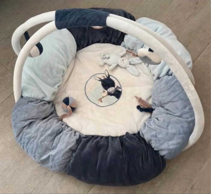 Bonjour je vend mon tapis d’éveil nattou en très très bon état avec le sac de protection mais le sac n’a plus ses fermeture elle a dérayer puis casser .