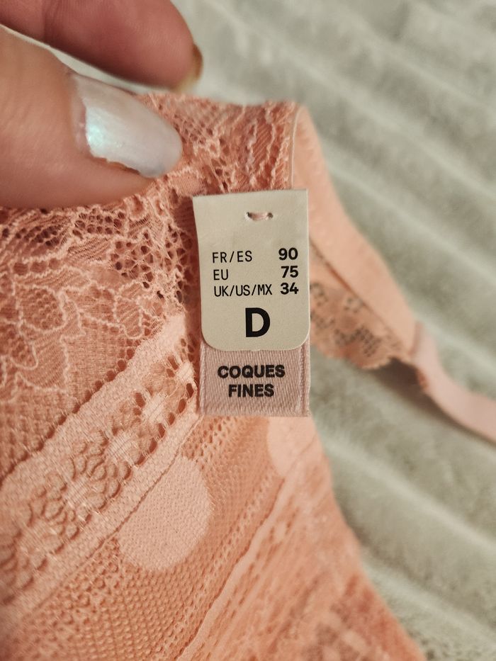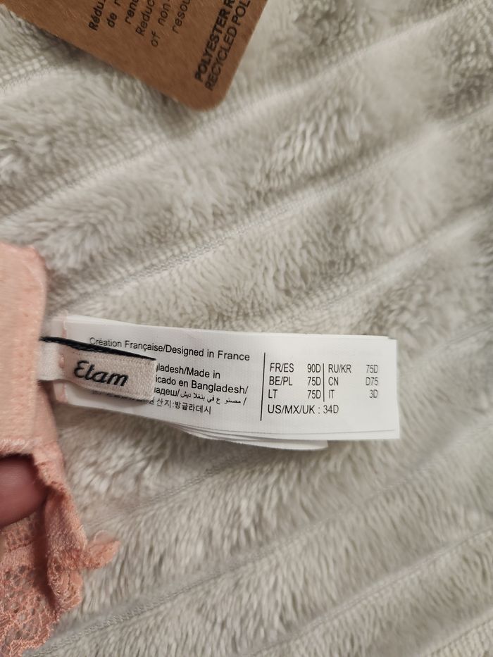 Soutien-gorge dentelle abricot ETAM – 90D – forme foulard – neuf - photo numéro 7