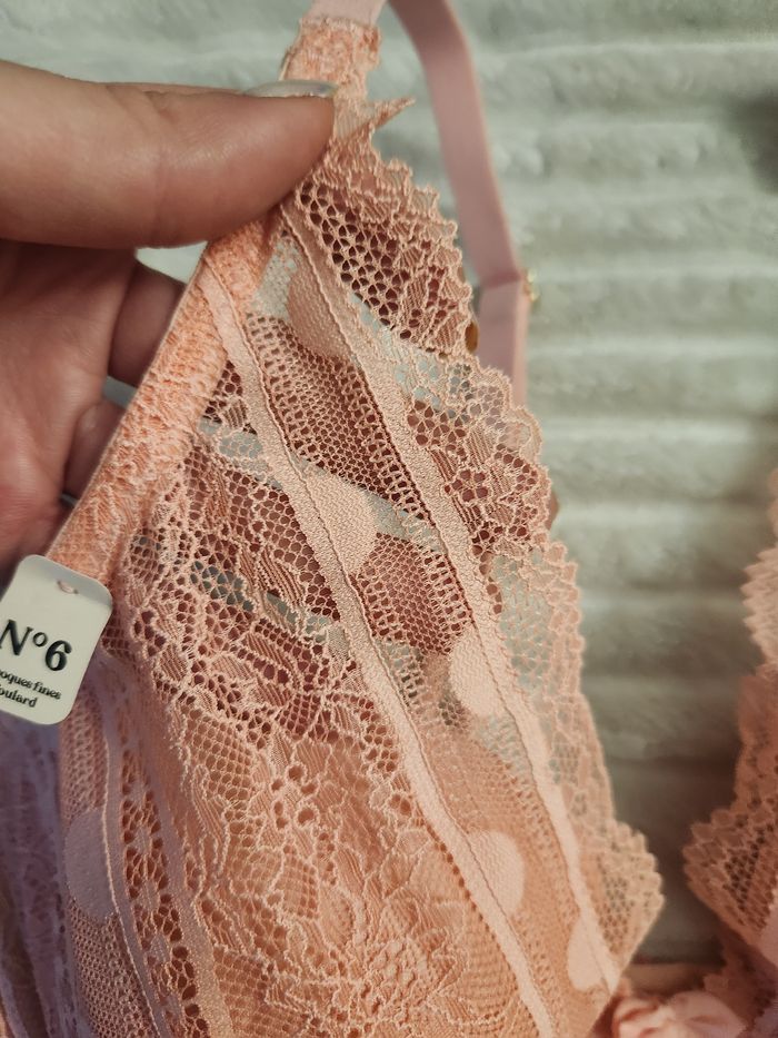 Soutien-gorge dentelle abricot ETAM – 90D – forme foulard – neuf - photo numéro 6