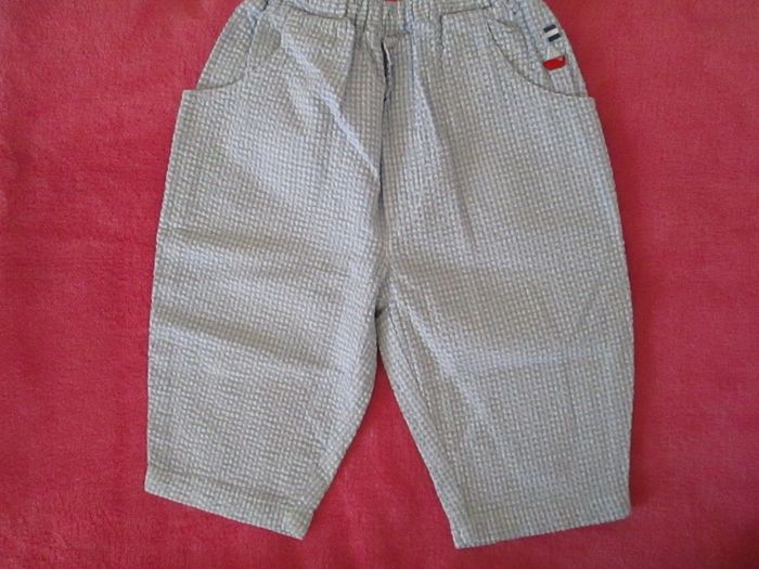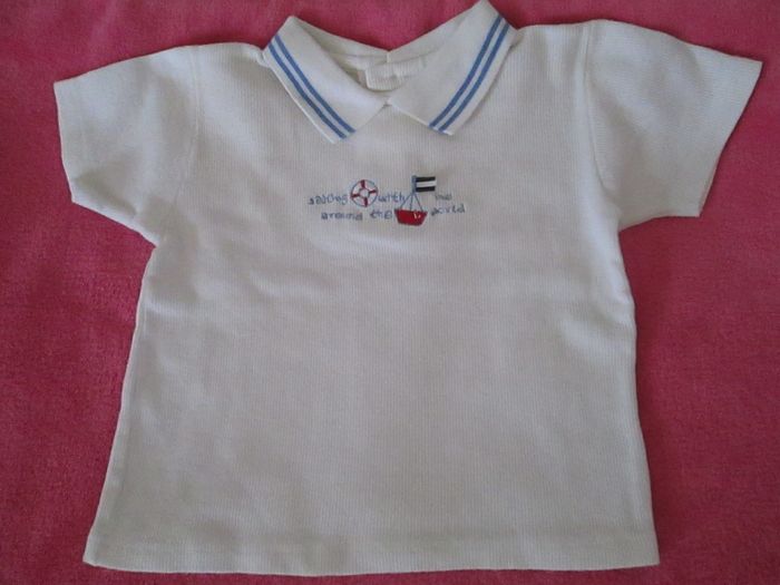Vends ensemble tee-shirt blanc motif "mer" + pantalon bleu ciel et blanc. Tee-shirt boutonnage dans le dos, 95 % coton et 5 % élasthanne. Pantalon taille élastiquée, 100 % coton. Taille 1 an. Excellent état, porté une fois. Pour plus de choix, allez consulter mes autres annonces.
