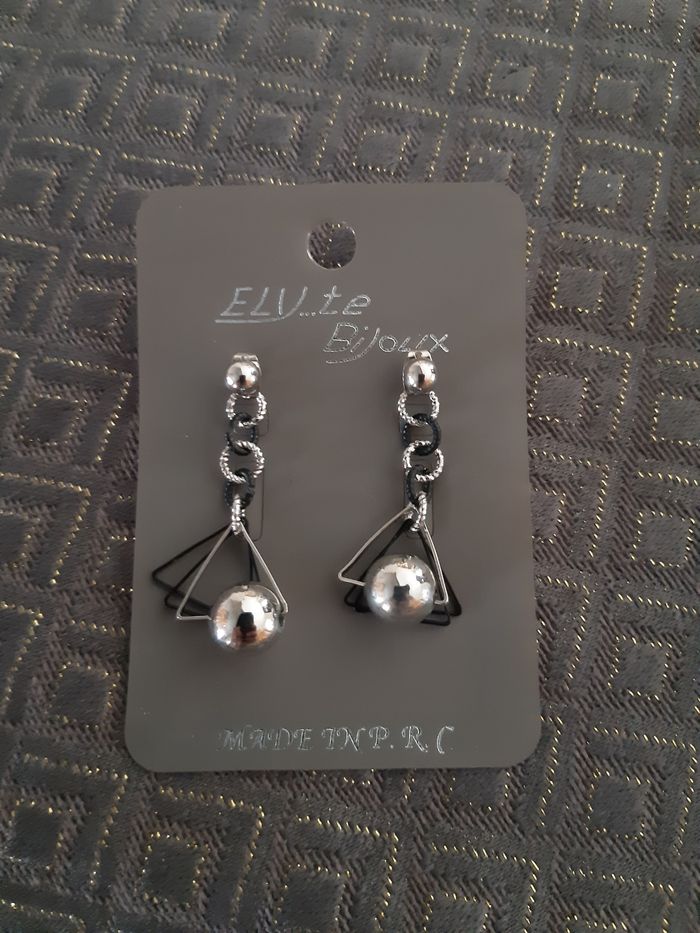 Boucle d'oreilles fantaisie, noire et argenté, longueur 3,5 cm