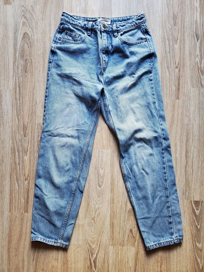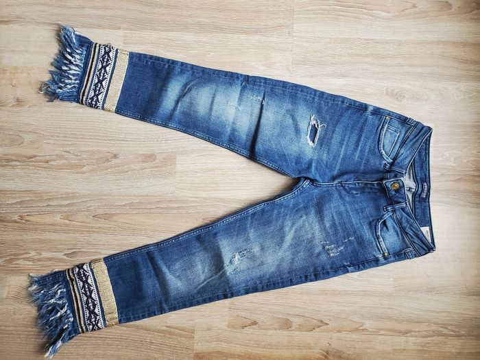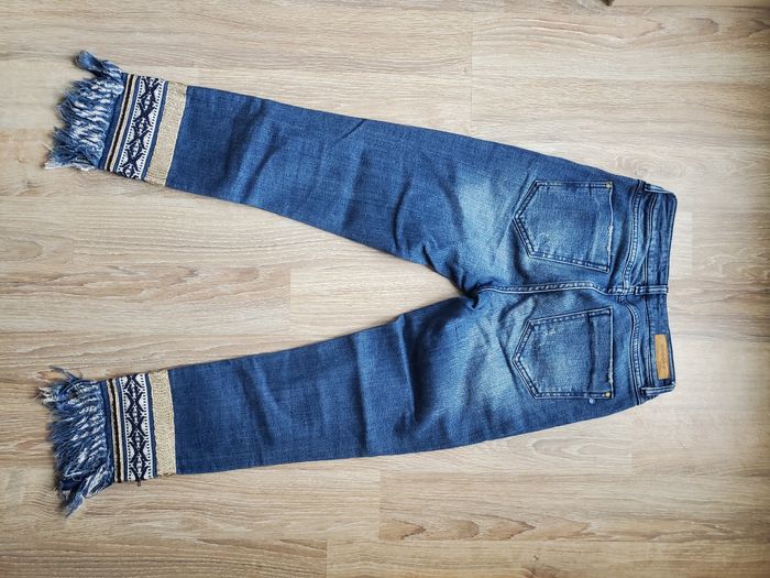 Lot de 3 jeans 14ans : - Jean skinny à rayures marines H&M. Parfait état, taille XS. - Jean foncé pattes d'éléphant Bonobo avec détails dorés. Parfait état, taille XS. - Jean mom clair Pimkie. Taille XS. Porté mais bon état d'ensemble. D'autres vêtements fille 14ans sur mon compte, n'hésitez pas à jeter un œil.
