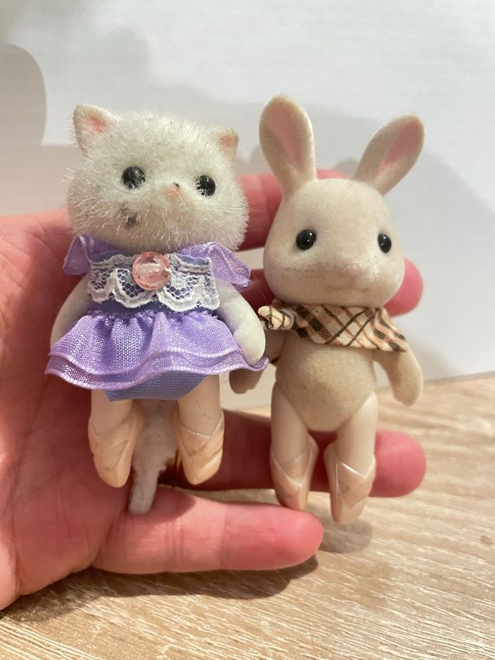 Sylvanian families danseuses Chat et lapin Ayant servi (petite traces noires sur le chat)