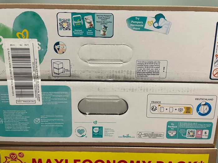 Bonjour, Je propose à la vente 3 lots de 78 couches Pampers Harmonie T4 (9 - 14 kg), soit un total de 234 couches pour l’ensemble. Je peux également vendre les paquets séparément, n’hésitez pas à m’écrire pour plus d’infos. Je vends également d’autres tailles ou/et références, n’hésitez pas à m’écrire pour plus d’infos. ⚠️ Important : évitez de sélectionner un locker 24/7 comme point de retrait. Le colis est volumineux et pourrait ne pas entrer dans un casier, entraînant un retour automatique. Privilégiez un relais commerçant classique. Pour faciliter l’expédition, il se peut que je retire les cartons extérieurs et n’expédie que les paquets intérieurs (fermés et intacts, bien sûr).
