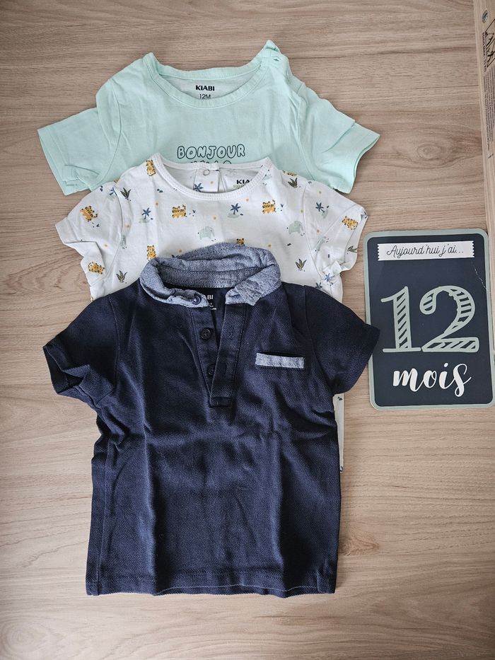 Taille 9 mois : - 2 shorts tape a l'œil Taille 12 mois : - 2 shorts kiabi et primark - 1 maillot de bain decathlon anti UV 50 - 1 marcel creek - 6 t-shirts manche courte kiabi, tape a l'œil, babygap, moulin roty et in extenso - 2 polos manche courte tape a l'œil et kiabi - 1 pyjama sans pied babygap - 2 combinaison short kiabi Le lot de 17 pièces pour 15€, pas de tache ni de trou tres bon état