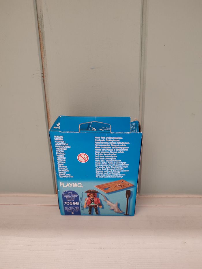 70598 Playmobil SpecialPlus boite scellée mais abimée ce set contient 6 pièces : 1 personnage, 1 radeau, 1 bébé requin et des accessoires
