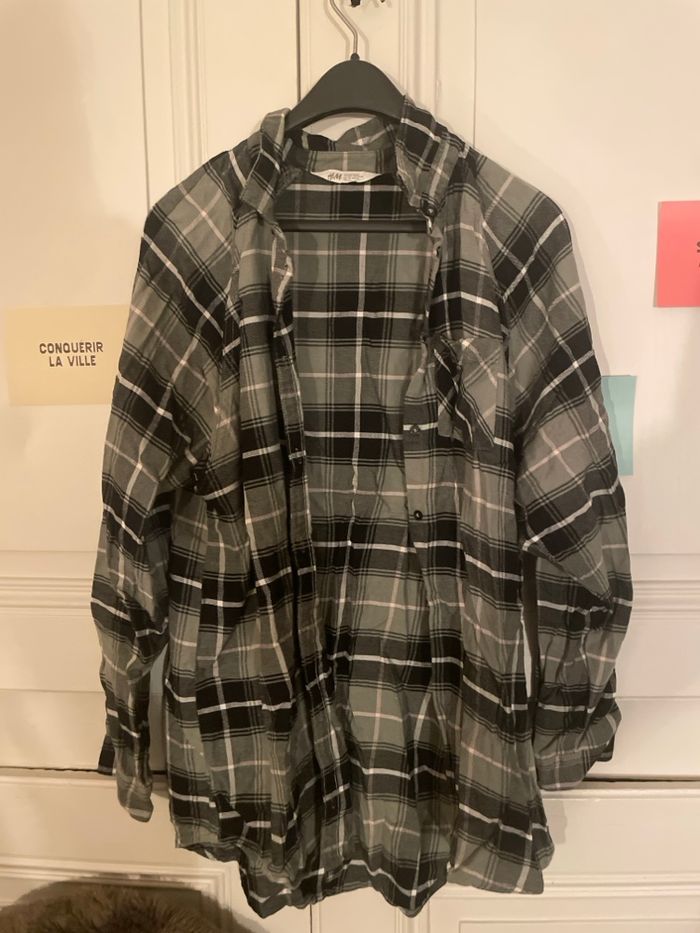Longue chemise à carreaux kaki  - photo numéro 1