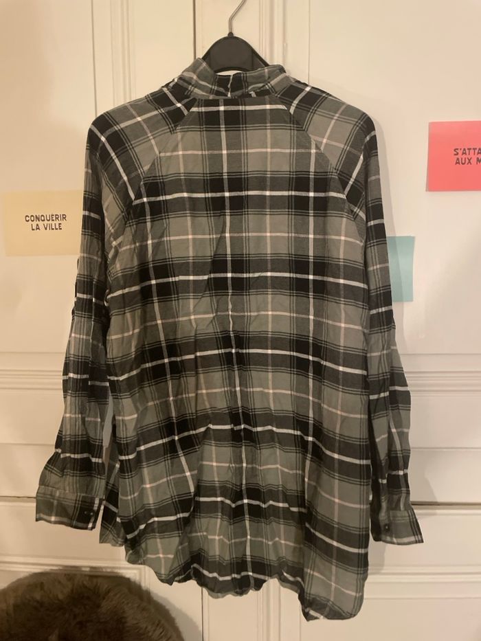 Longue chemise à carreaux kaki  - photo numéro 2