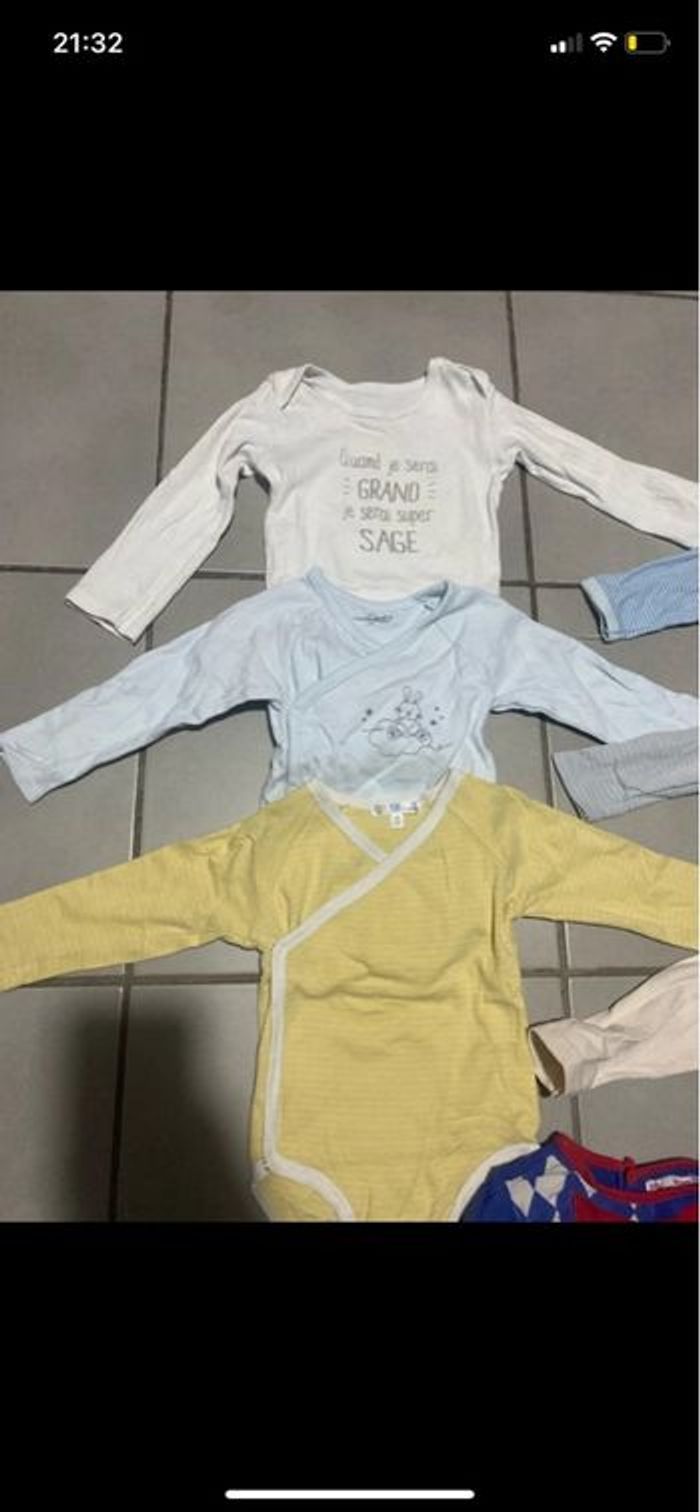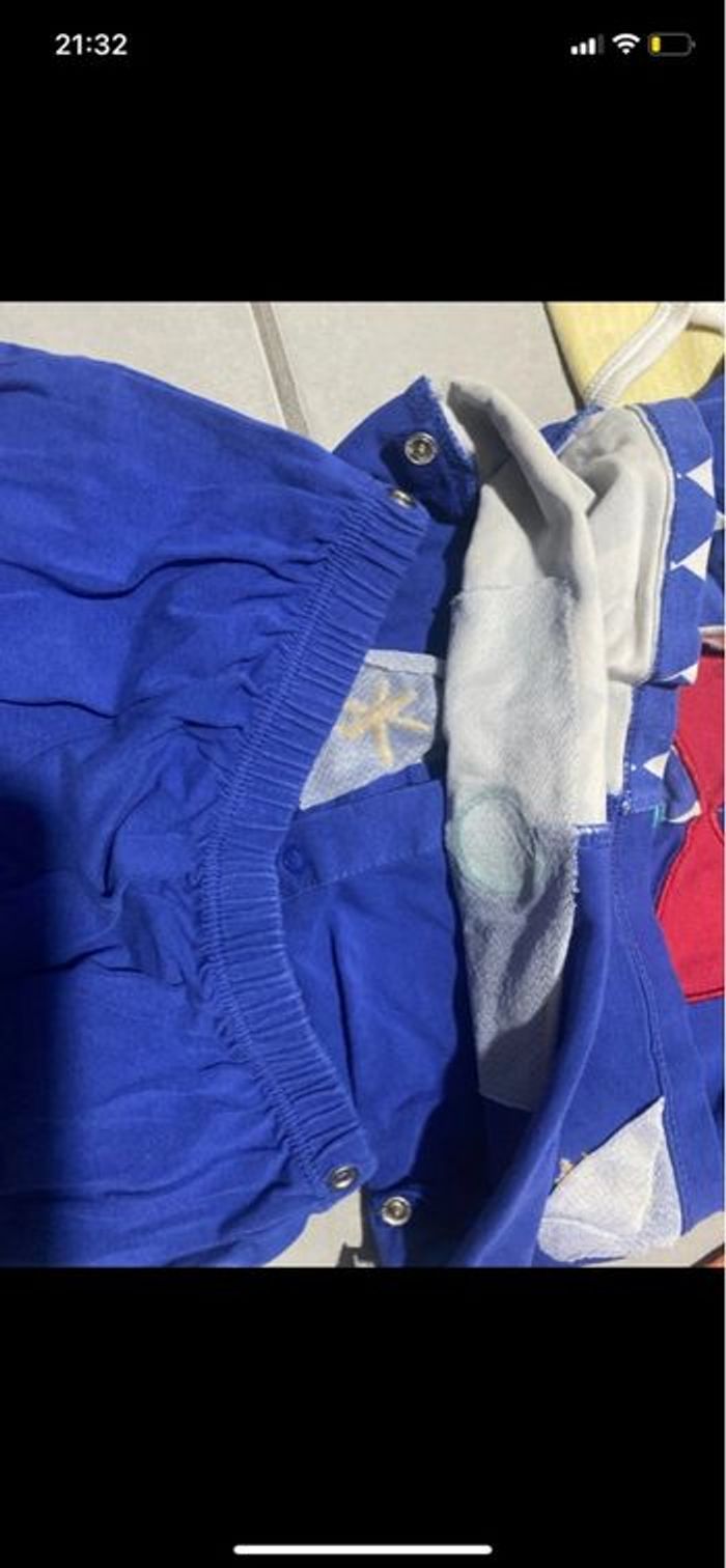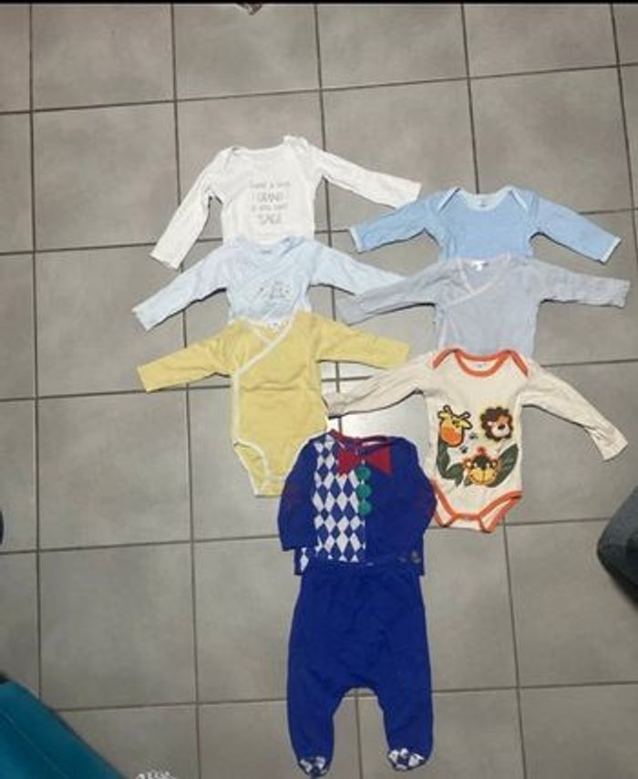 - 6 body manches longues de diverses marque en bon état (Le body avec les animaux est noté en 24 mais c’est clairement trop petit et convient plutôt à du 12 mois) - 1 ensemble petit clown DPAM en bon état également (système de boutons pression à la taille pour rattacher le haut et le bas)