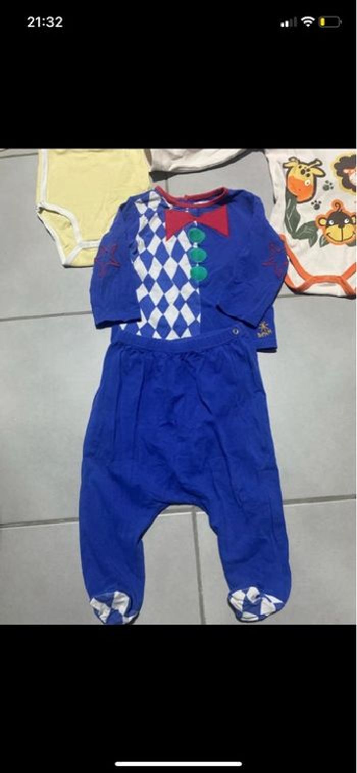 Lot de 6 body 12 mois + 1 ensemble DPAM petit clown