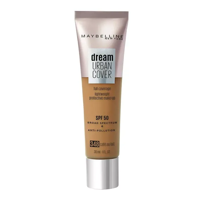 Optez pour le fond de teint Gemey Maybelline Dream Urban Cover , perfecteur de teint , couvrance modulable et haute protection. 30ml SPF 50 + antipollution Teinte : 348 Café au lait