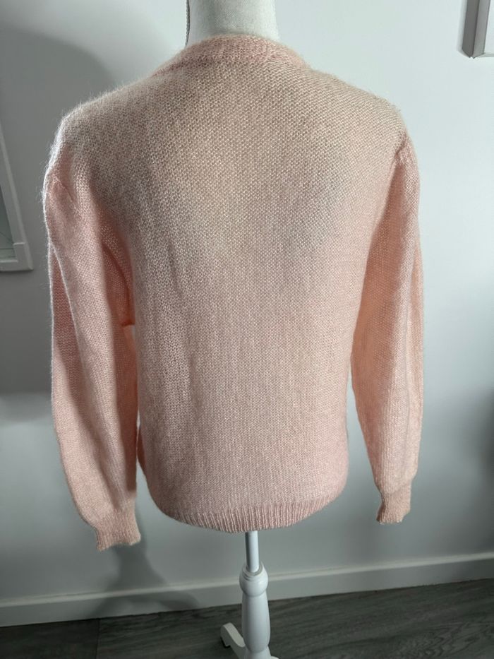 Cardigan rose poudré en kid mohair et perles Vintage T42 XL - photo numéro 6