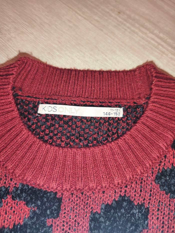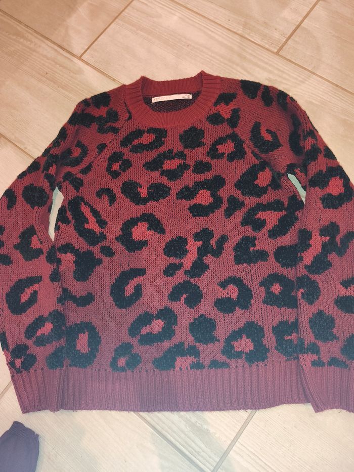 Pull épais motif léopard noir et rouge bordeaux taille 10 ans Très bon état