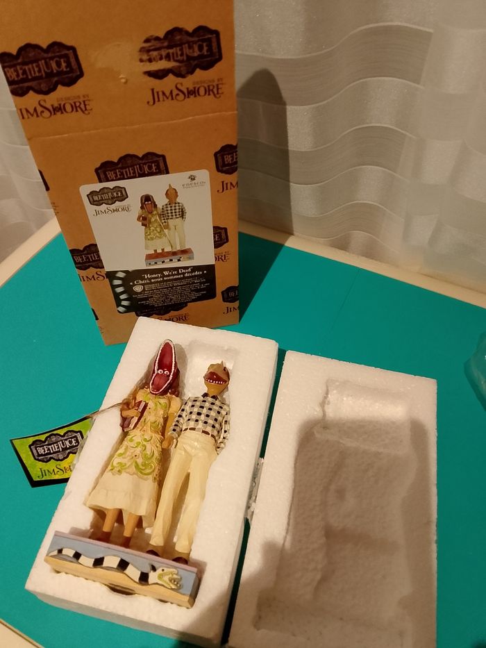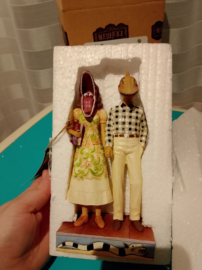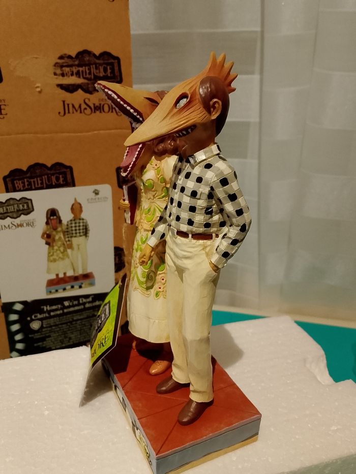 Figurine décorative inspirée d'Adam & Barbara / Beeblejuice Dimensions : 10 cm (largeur) × 19,5 cm (hauteur) × 6,5 cm (profondeur) Fabriquée en résine composite de haute qualité Design artistique de la collection Jim Shore