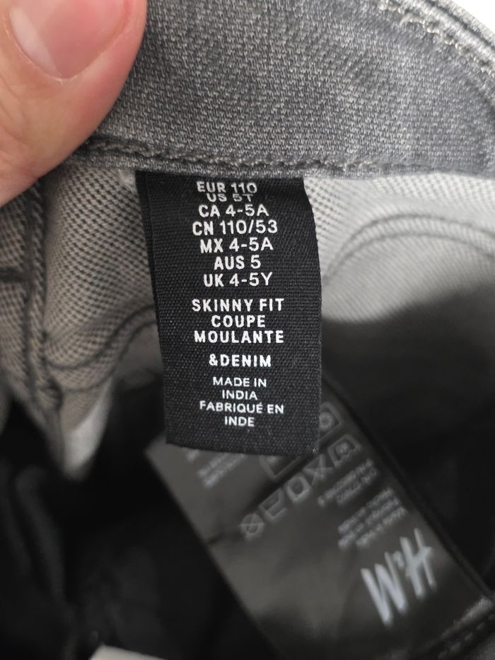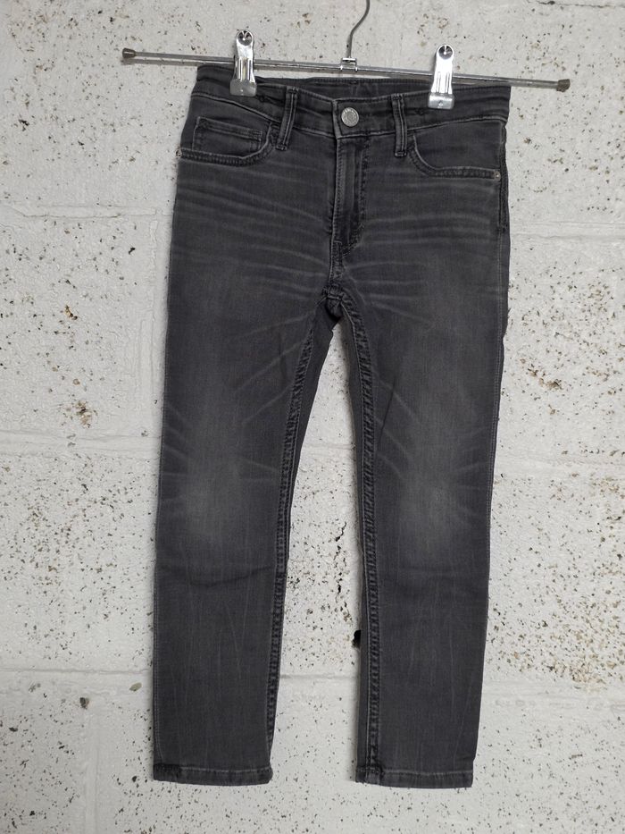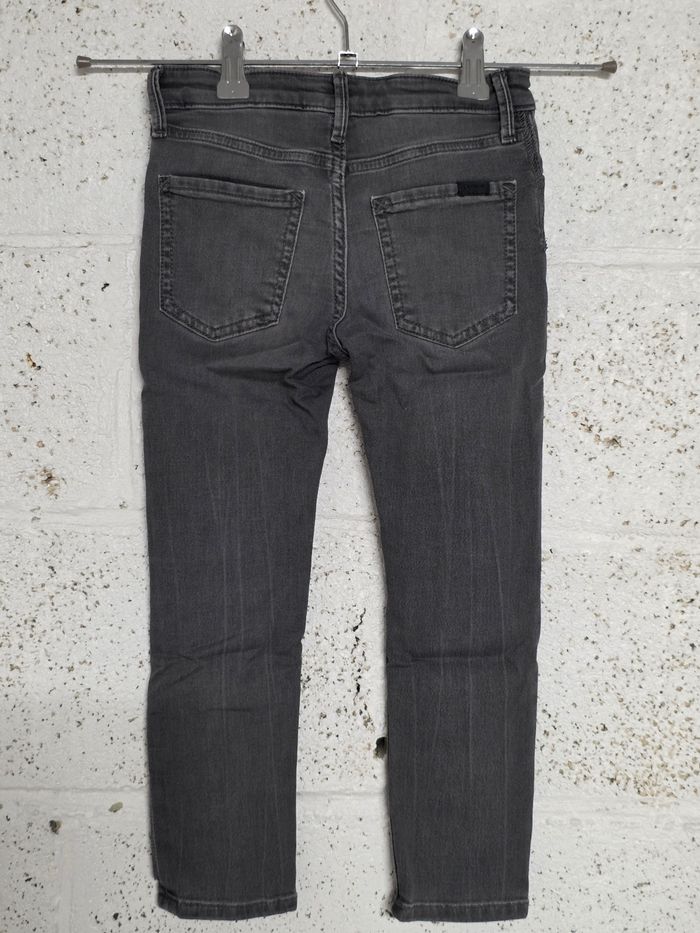 Jean coupe skinny en très bon état taille 4-5 ans (110cm) plutôt pour du 5 ans. Serrage tour de taille grâce à un élastique.