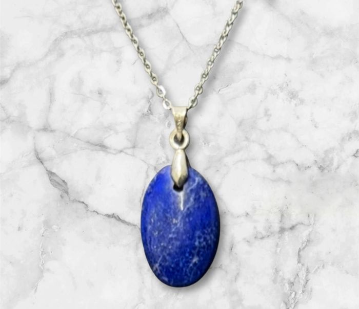 Magnifique pendentif lapis lazuli. Chaîne argenté acier inoxydable. Livré dans une boîte cadeau. • Aide à réduire le stress • Atténue les migraines • Allège les problèmes d'insomnie • Contribue à débloquer la parole en cas de colère ou frustration • Apaise les symptômes d'allergies, notamment respiratoires • Encourage une meilleure confiance en soi • Soulage les maux de ventre Pleins de bijoux à mettre dans mon dressing. #mccfbijoux N’hésitez pas à vous abonner et à lire mon profil 😉