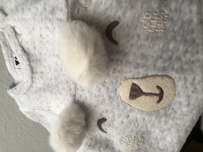 Pyjama hiver, grenouillère, dors bien Tape à l’œil, Taille 1 mois/ 53 cm, En velours fantaisie. Sublime pyjama gris clair avec une tête d’ours qui a de jolies oreilles blanches toutes douces. Mixte. Ouverture par pressions sur tout l’avant (côté). En excellent état, pas de signe d’utilisation. 🌸 Vous aimez cet article ? N’oubliez pas de visiter le reste de mon dressing en filtrant les tailles.