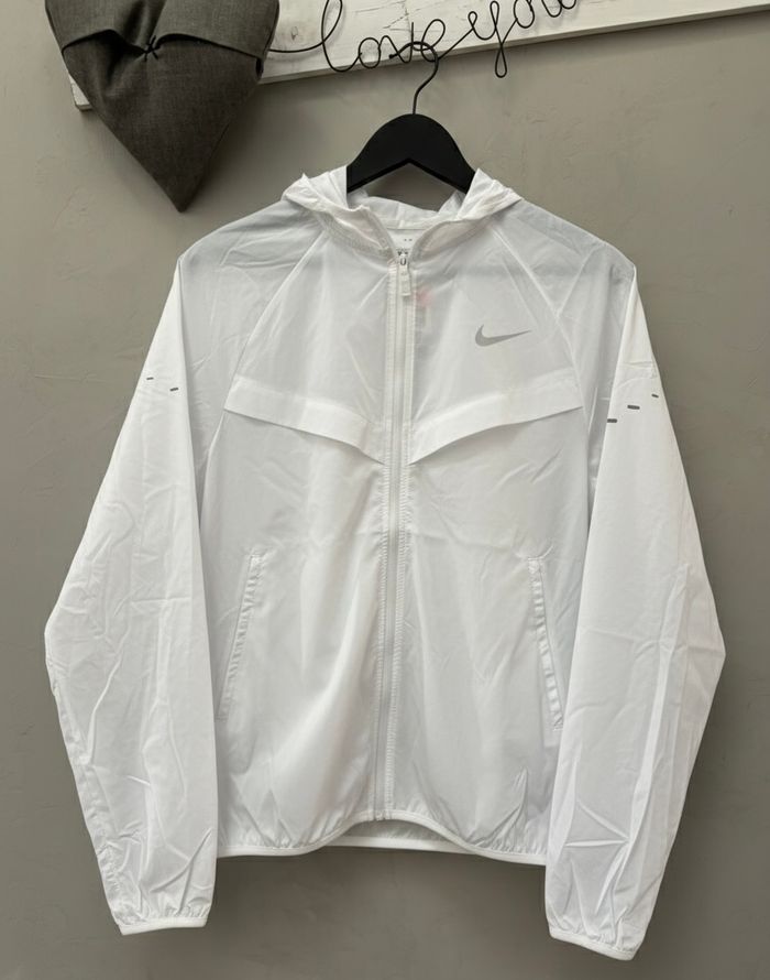 Veste Nike pour homme, neuve avec étiquette. Coupe-vent léger, agréable à porter, idéale pour le sport ou tous les jours. Couleur blanche, style sobre et facile à assortir. Fermeture zippée, taille M. État impeccable.