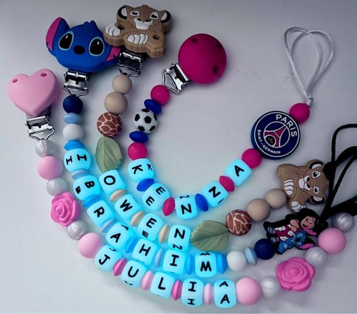 Pour passer la commande il suffit de valider le paiement sur l'annonce du modele désiré et de m'envoyez le prénom de l'enfant par message que je puisse réaliser votre commande. A partir de 2 articles vous bénéficiez de 5% de réduction. Réalisation dans la journée l'adaptateur tétine mam et en supplément à 1€ Si vous souhaitez quelque chose en particulier n’hésitez pas à m’envoyer un message qu’on voit ça ensemble 🥰 Une photo peut être envoyé avant l’envoi bien sûr ☺️