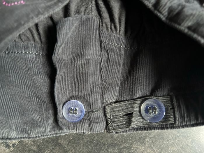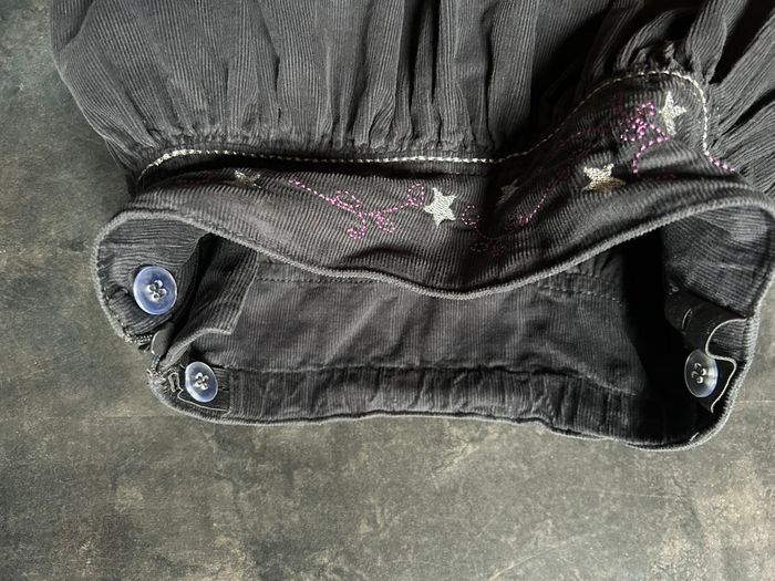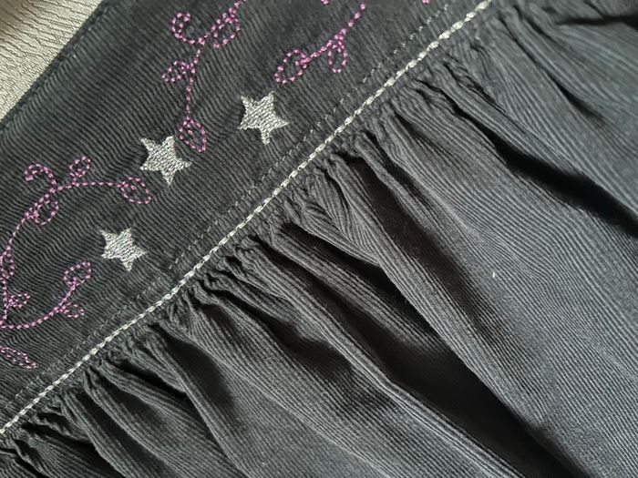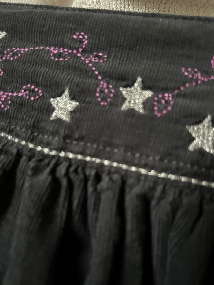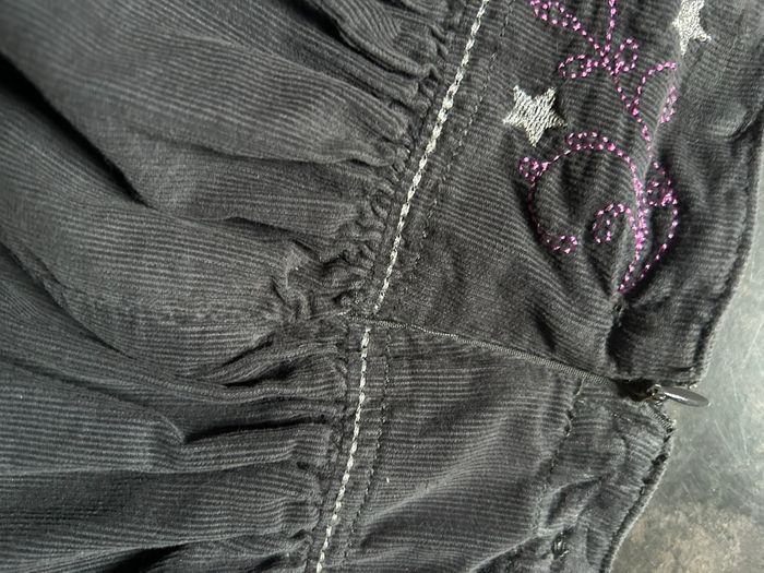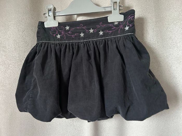 Jupe ballon en velours gris anthracite Sur la ceinture broderie étoiles argentées Réglable à la ceinture Fermeture latérale Taille 4 ans Influx