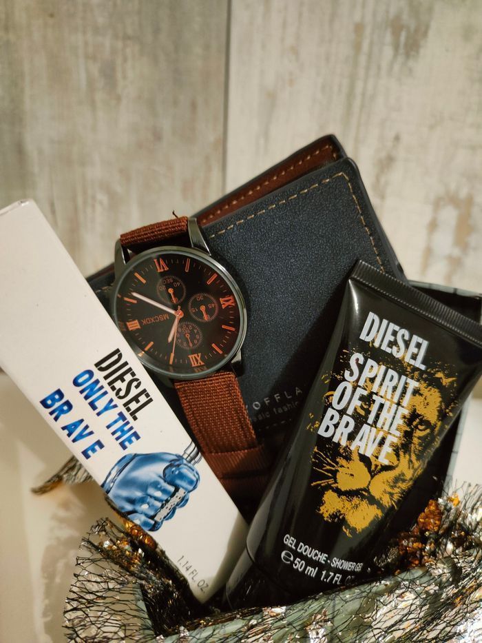 Coffret homme neuf comprenant 1 parfum 1 gel douche 1 portefeuille 1 montre