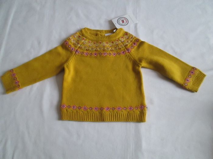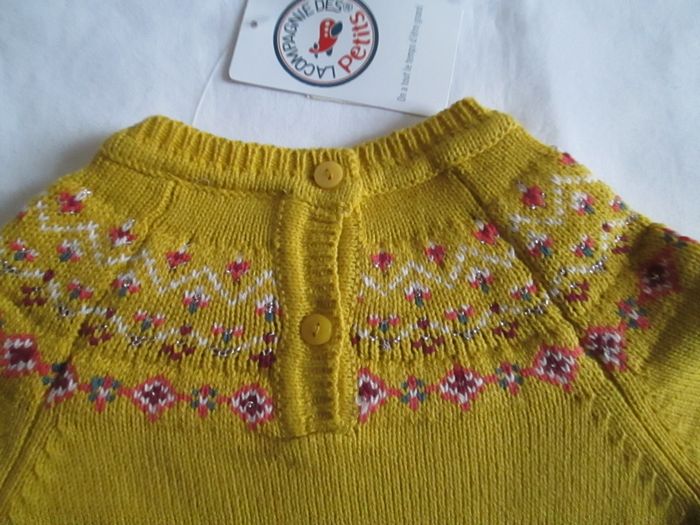 Vends pull la Compagnie des Petits. Motifs jacquard sur le devant Boutons dans le haut du dos. 60 % coton + 40 % acrylique. Taille 1 an. Prix d'achat 25,95 €. Neuf, vendu avec étiquette. Pour plus de choix, allez consulter mes autres annonces.