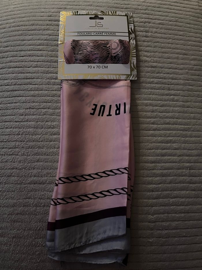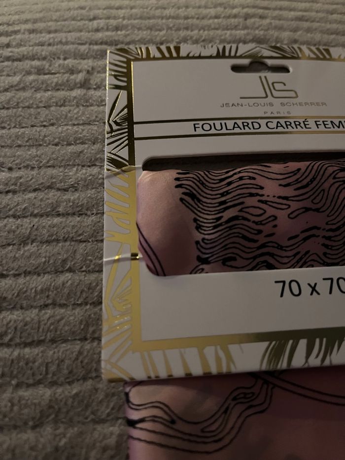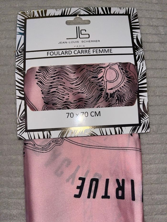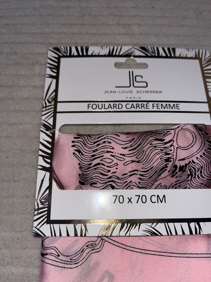 Foulard carré femme 70x70cm JEAN-LOUIS SCHERRER PARIS Neuf ( emballage légèrement abîmé voir en photo rien de bien méchant) Valeur: 29€