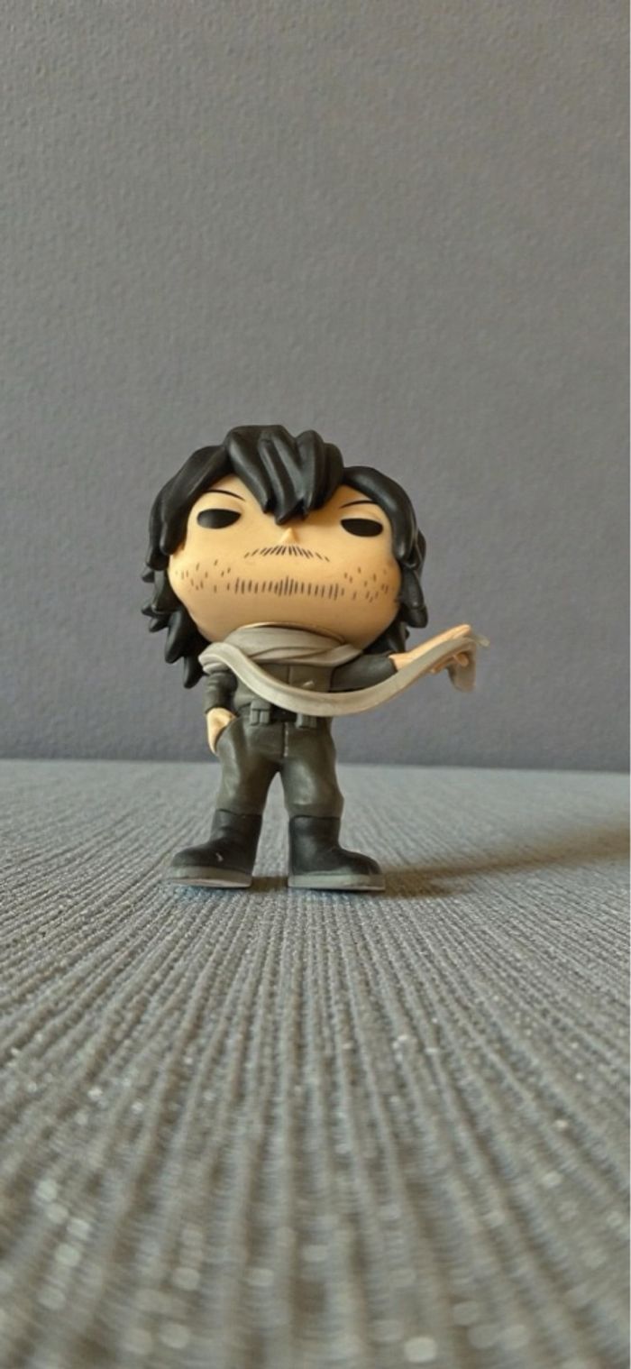 Figurine Funko Pop officielle My Hero Academia. Personnage Shota Aizawa alias Eraser Head, numéro 375, édition 2018. Figurine d’origine Funko, licence officielle visible sous les pieds. Vendue sans boîte. État général bon. Légères traces d’usage visibles sur les photos. Aucune casse, figurine stable. Présence possible d’un léger bruit interne lorsque secouée, phénomène connu sur certaines Funko, sans impact sur l’aspect ni la stabilité. Idéal pour collection My Hero Academia, figurine manga anime, décoration ou complément de collection Funko Pop. Photos réelles, envoi soigné.