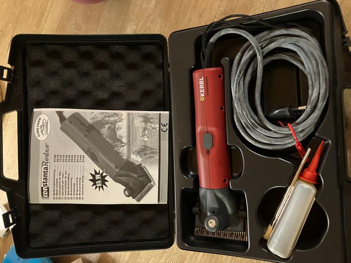 Tondeuse Kerbl Constanta Rodeo - Idéale pour chevaux. Fabriquée en Allemagne • moteur à aimant permanent performant et facile d'entretien • nouveaux peignes en acier durci • extrêmement légère, avec seulement 690 g • extrêmement silencieuse Elle n'a jamais servi. On la trouve à 235€ sur internet.