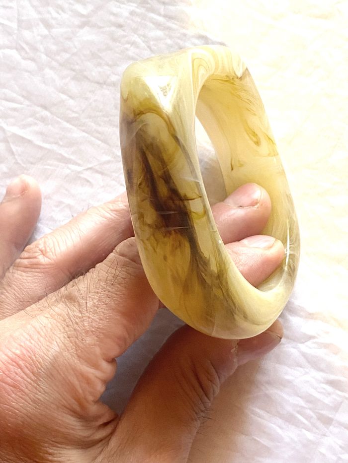 Bracelet Large Epais Jaune Ocre Fondu Tâche Grosse Ligne Difforme Sinueuse Bijou Fantaisie Femmes - photo numéro 5