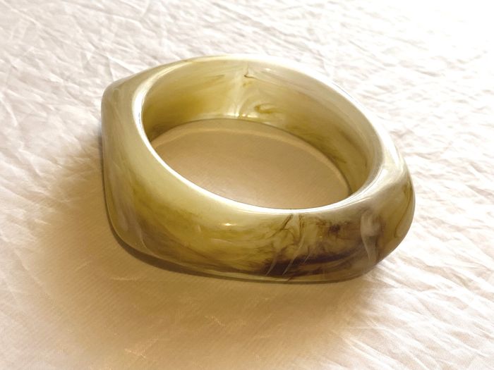 Bracelet Large Epais Jaune Ocre Fondu Tâche Grosse Ligne Difforme Sinueuse Bijou Fantaisie Femmes - photo numéro 1