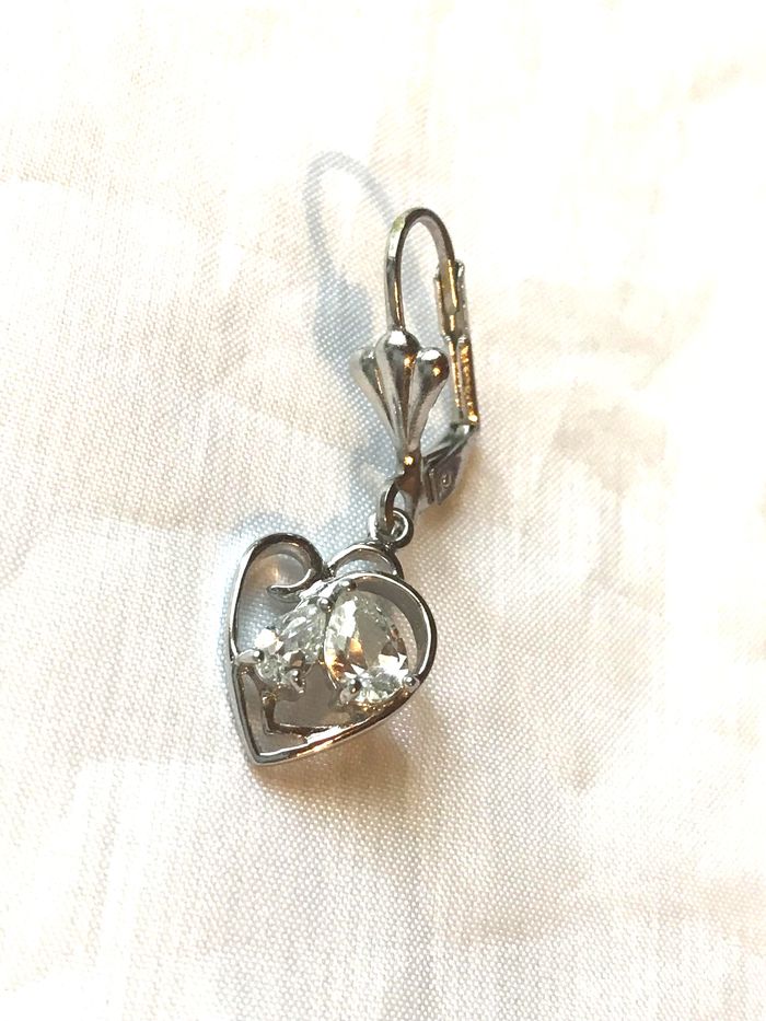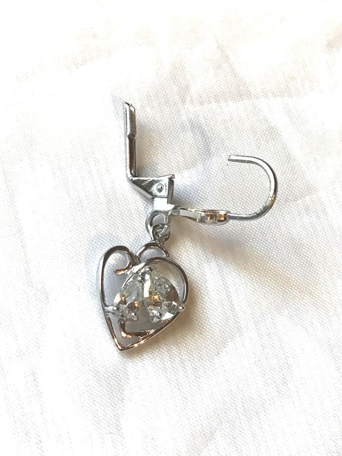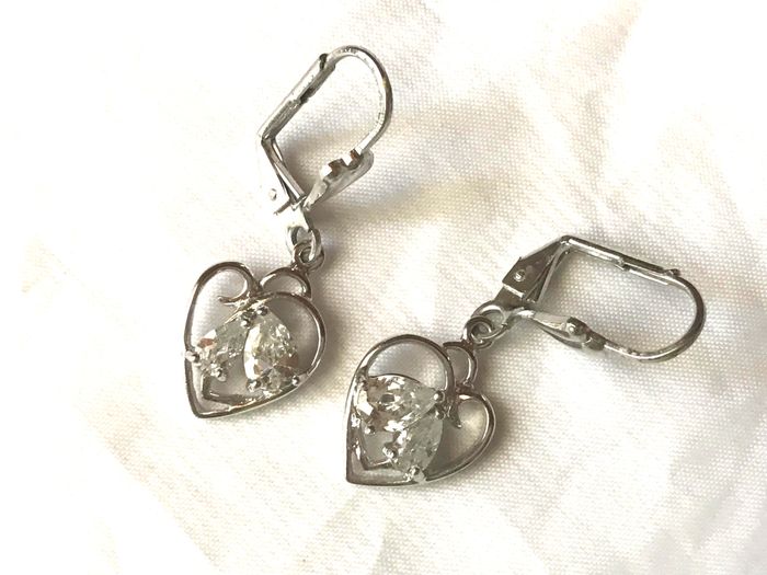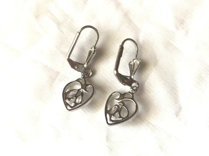 Boucles Oreilles Pendantes Petit Cœur Pierres Gouttes Strass Amour Bijoux Argentés Fantaisies Femmes - photo numéro 1