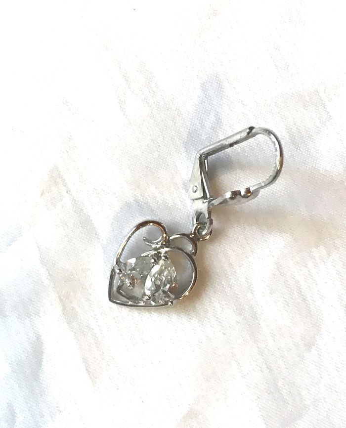 Boucles Oreilles Pendantes Petit Cœur Pierres Gouttes Strass Amour Bijoux Argentés Fantaisies Femmes - photo numéro 5